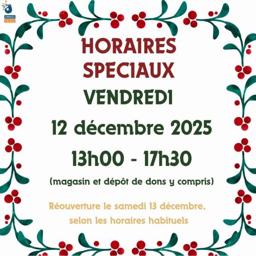 HORAIRES DE LA ZONE DE DÉPÔT DES DONS